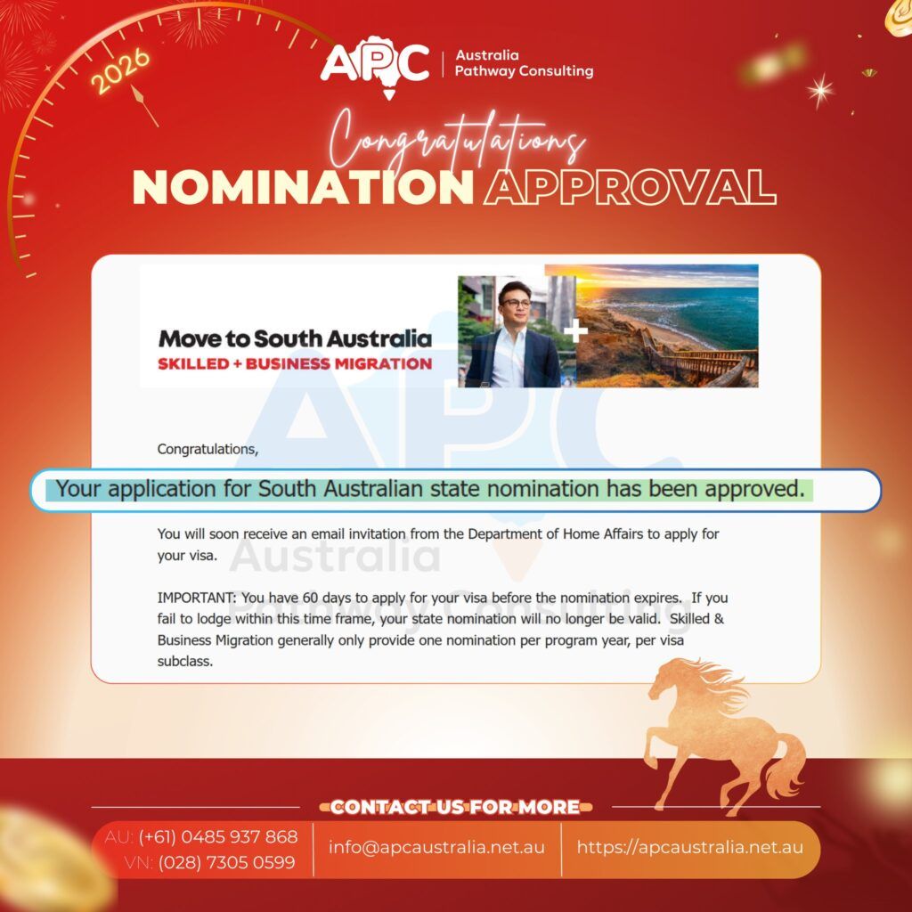 Trước thềm năm mới, APC xin chúc mừng bạn M. ngành Graphic Designer đã chính thức nhận Invitation và Nomination Approval 491 từ bang South Australia với tốc độ ấn tượng: chỉ sau 2 ngày làm việc!